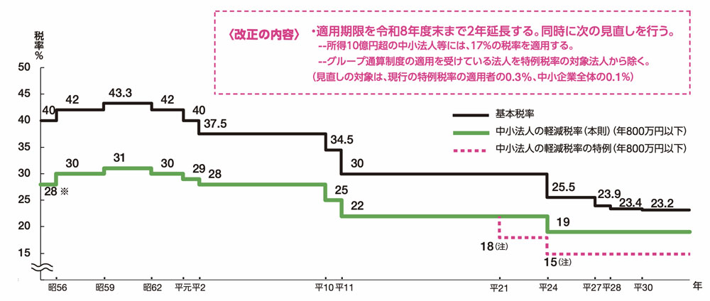 中小法人等に適用されている法人税の軽減税率の特例は、令和7年度税制改正において適用期限が延長されることになりました。